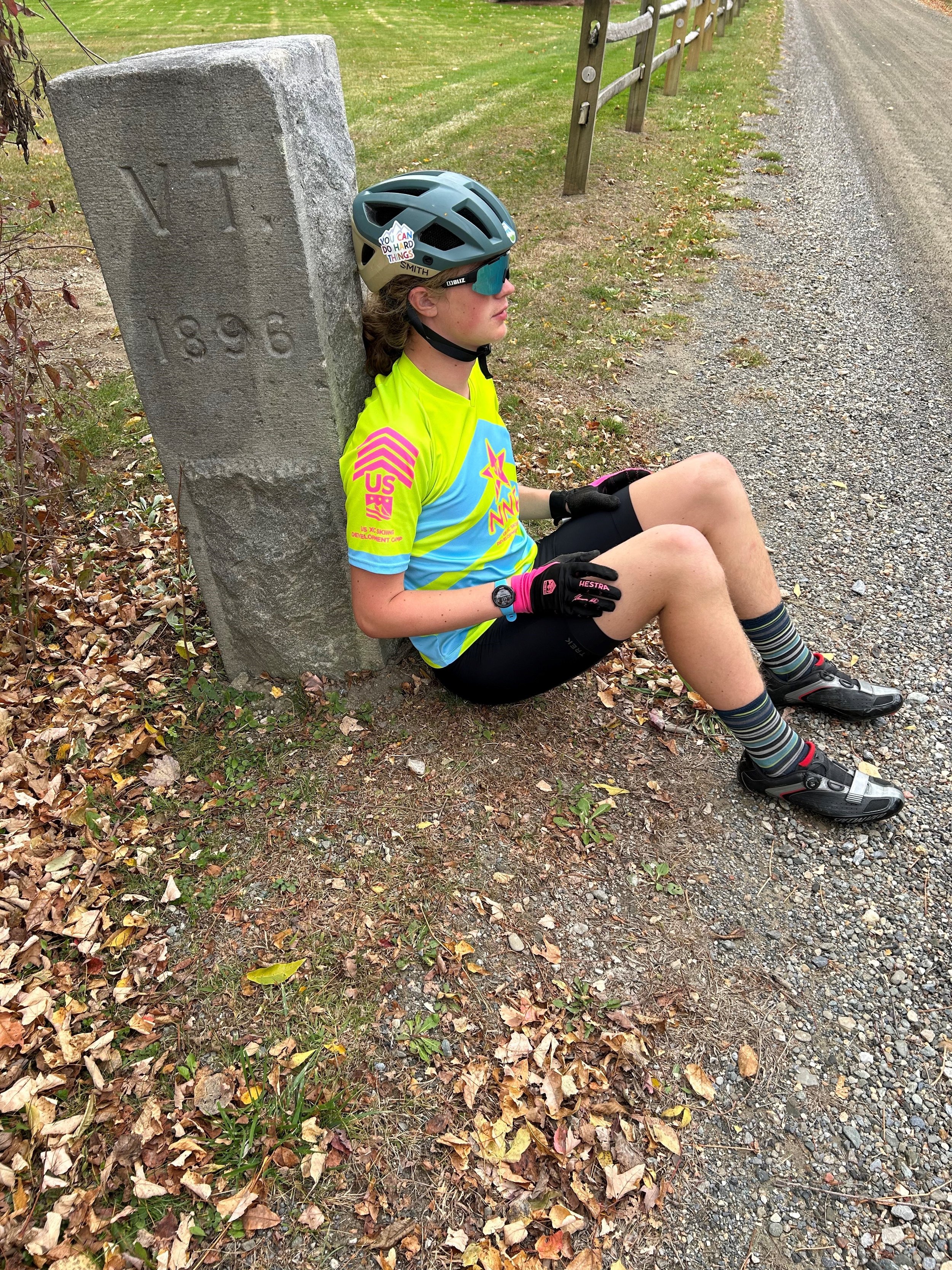 The final day started with a 20 mile slog up and over the mountain. I was worried about this section but it went surprisingly well. I made it up and over and into Arlington much quicker than I expected. I had high hopes that the last section of the ride would be the easiest but the climbing continued and the last mile of the ride was all uphill. I sat against the granite post that separates MA and VT for a few minutes to rest my legs and then went home to finish my homework and to gear up for the state meet the following weekend.